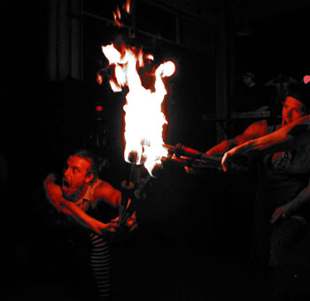 Wednesday, October 31, 2007 I bike to work most every day. I park my bike in the teacher's lounge and then change in the bathroom a few feet away. My supervisor was looking for me this morning so I could fill out an incident report about a fight which involved a teacher getting injured that I had witnessed and helped break up yesterday afternoon. She came into the lounge while I was in the bathroom and I overhead this conversation: Super: Is that M...'s Bike? So, apparently, to people who don't know me well, the best way to describe me, nay - my most distinguishing attribute, is that I stutter. Douchebags. Although, honestly, I don't really care. I just thought it was interesting. I'd kinda forgotten that I stutter. Posted by Dreqan @ 08:28 PM PST Link | 3 People give a shit! Monday, October 29, 2007 I call bullshit! BULLSHIT! According to CNN The Gap is "deeply disturbed" to learn that sweatshops are being used to make their clothing. HOWEVER, THIS IS NOT NEW NEWS. Well, at least the sweatshops aren't. The Gap pretending to care is new. In fact... I do think I may have even mentioned this before... wait...wait for it... Oh here it is, I told you all about The Gap using sweatshops 5 YEARS AGO! Wow, I've had this blog along time... Posted by Dreqan @ 06:06 AM PST Link | 14 People give a shit! Sunday, October 28, 2007 The bike trailer project is going well. I decided to use EMT conduit instead of wood. It's about $4 for 10 feet, so the project is no longer free... The huge trailer will probably cost around $30 in parts (6ft by 2.5ft) and my smaller one, for shopping, will probably cost $20. However, that's not bad for a high quality, light-weight steel trailer. I plan on building one for Brian too to haul his juggling gear. After building three together we think we might be good enough to start making a bunch and sell 'em for $100 or more a piece. We'll see. I'm 70% done with my first one, the huge prototype, and so far things are going great. I'll post pics when I'm done. Posted by Dreqan @ 07:45 PM PST Link | Click here to give a shit Thursday, October 25, 2007 I need a bike trailer. I have a bike trailer. It's 9 feet long and awesome, but it's in Cedar Falls, Iowa, hiding under my Dad's deck. Mmmmm.. Too big to ship... and the next time I'll be driving to Iowa will be RAGBRAI in almost a year. So... Any of you want to drive to Oregon? Pssh... What I will most likely do is build a bamboo trailer but instead use dumpster wood from local framing projects. I can get a lot of 2x4 that way and then rip them to 2x2. I *think* those will be strong enough. I plan on making it around 6 feet long with a plywood base and maybe foot high walls. With luck I can do this for the cost of nails and the electricity required to run my saw. Oooh, and I'll need to go to CAT to pick up used bike wheels or grab a little kids bike from Goodwill and get the wheels off that. Why do I need this you ask? Why, to carry juggling props and two unicycles (one over 5 feet tall) to our performances and practices, of course. Trucks are for suckers and so is buying gas. (It's $3.00/gal in Oregon, which is low for around here.) Also, and this is a much lesser reason, we often only get paid in free beer. I'm tired of turning down free beer because I need to drive home after the show. Beer is for after parties, but driving home is not. Trailer FTW! And before you more responsible types say anything - No I don't bike drunk. However, I'd fail a Breathalyzer long before I'd be too tipsy to ride my bike safely. (It only takes, what, a beer and a half to fail one of those things?) Posted by Dreqan @ 07:24 PM PST Link | 3 People give a shit! Monday, October 22, 2007 The GreyMatter Jugglers were in the news again! This time we took up two whole pages! Go here for the online article or go here for the PDF of the newspaper. Wee! Posted by Dreqan @ 08:37 PM PST Link | 14 People give a shit! Saturday, October 20, 2007 Acclaim from our Sept 22 show at UofO's Intermingle: Andrew Levad, a freshman math major, was one example. He walked by as performers from Earth DescenDance Fire Theater and GreyMatter Jugglers danced and juggled with fire in the amphitheater, and ended up sitting down and watching for the remainder of the hour. "It was amazing," he said. "It was like every sense was overloaded with - it was incredible. I'm speechless." Posted by Dreqan @ 11:53 PM PST Link | Click here to give a shit Thursday, October 18, 2007 Jimminy Christmas, I have 3 shows coming up in as many days. Tonight (thursday) we perform a fire show withThe Black Rose Burlesque, Friday we are ambient entertainers at some event that I just heard about, and Saturday we have a non-fire show at Qehn's assisted living place. Crazy! Posted by Dreqan @ 04:07 PM PST Link | 16 People give a shit! Saturday, October 13, 2007 I just got paid a fat bill to take a youth suicide prevention course online. Apparently since I'm a pseudo-teacher now I get to take really obvious online courses for money. Sweetness. This course was about as common sense as you can get - but I may just think that due to my exposure to scores of depressed folk and my own little battles here and there. I hope there aren't a whole lot of teachers out there who actually learn anything NEW from these videos. It seems like most folks would have learned most of this kind of thing from life experiences by now. I think it's funny that I work with a lot of student teachers and they are all around 21 years old. People assume I'm a 21 year old student teacher as well. NO BITCHES, I'M 27 YEAR OLD INSTRUCTIONAL ASSISTANT WITH A WASTED MICRO DEGREE! But y'know what? I don't really care 'cause getting work as a teacher is effin hard - whereas work as an IA is pretty damn easy. (says the guy who still has a temporary assignment) Posted by Dreqan @ 10:48 PM PST Link | 15 People give a shit! Wednesday, October 10, 2007 I need envelopes in order to mail a dude a check for $10 so that I can get 150+ pictures of a show w